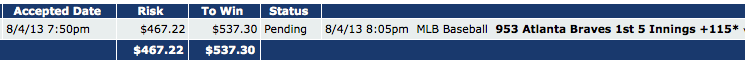 4-1 today guys. Good Day for me. So much for RIFFRAFF( calls me a fraud?????). But anyways Small Play on the
