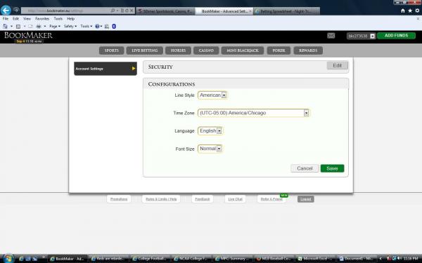 You can fix the time discrepancy in your BookMaker account by clicking on your account number in the upper right-hand part of your browser and then clicking on *My Settings*.
