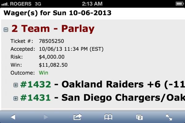Sure as hell aint laying a G on a parlay. It was $132 to win $346.xx