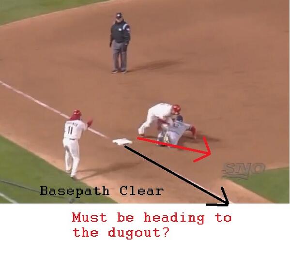 #21your pictures are irrelevant; there is no defined "basepath" or "baseline" in this situation, the basepath is where the runner is. The only time the basepath comes into existence is when a fielder attempts to tag a runnerComment