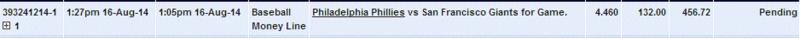 #6596The KC-Twins line makes zero sense. Definitely a fishy line. Books obviously expecting KC money to come in. As good as Phil Hughes has been this year, he has been bad at home with a 5+ era at Target Field. I've been backing Hughes on the road a lot this yr, just don't understand his home/away splits. Most likely passing on this game.Originally posted by No coincidencesNo play on the afternoon games. Don't really trust Hudson -- or the Giants in general -- given the current form.