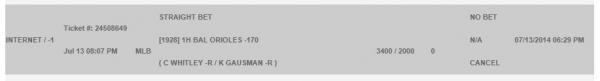 Hello, I have a question and need help finding the answer. Last night I bet Bal 1h. The game went on full 4 1/2 innings before being called. My bookie decided to cancel/no action the bet because according to him, for the 1st 5 innings bet, the 5 innings should be completed.