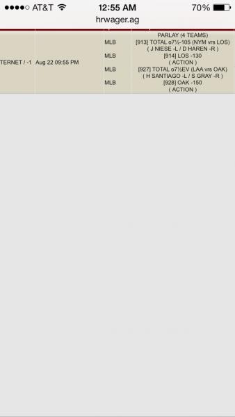 I about puked after seeing what happened after hedging my Oakland Under with Oakland Over.Comment -
