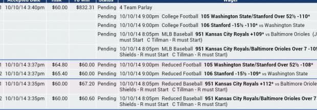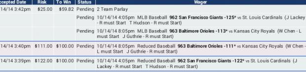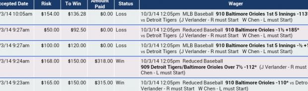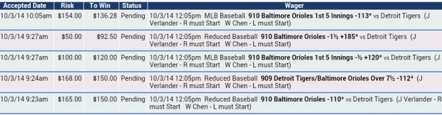Alright guys im posting my 5 plays for the early game. I think we are gona see a repeat of yesterday and the Os dominate once again today. Here is my ticket showing I'm not betting air and best of luck to us today!