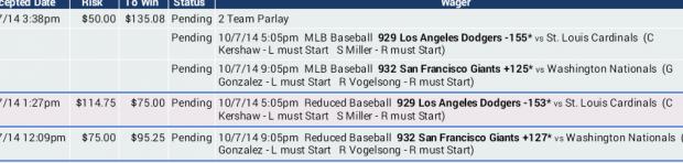 #17Thats not a bad bet dude. Only time I really play Kershaws steep lines is in parlays or live after giving up an early run. I can see him giving up 1 or 2 early. I would have waited for a live line too but already started drinking and dont wanna bother while im at the game.