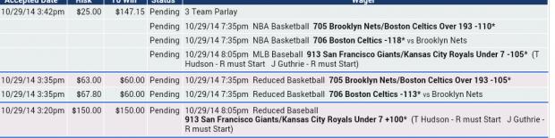 #2OK, brother. Covered each other all through the series. BOL tonight. I am on the other side.Originally posted by ustrcblueWell here it you workaholics the last game of the year for baseball. Here Is my pick on tonight's game as well as my basketball. Now as u may know I do have the giants to win the series so obviously I will be rooting for them. However the actual play for tonight's contest is the under 7. Cash em!!!