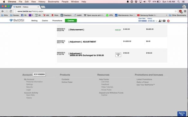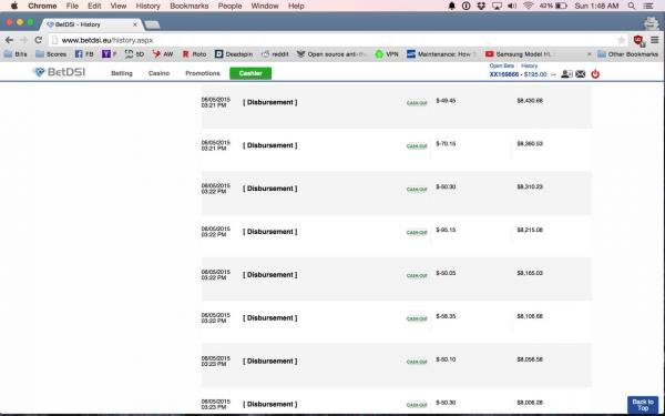 Saturday- All deposits I had ever made to betdsi had been refunded to my ************.