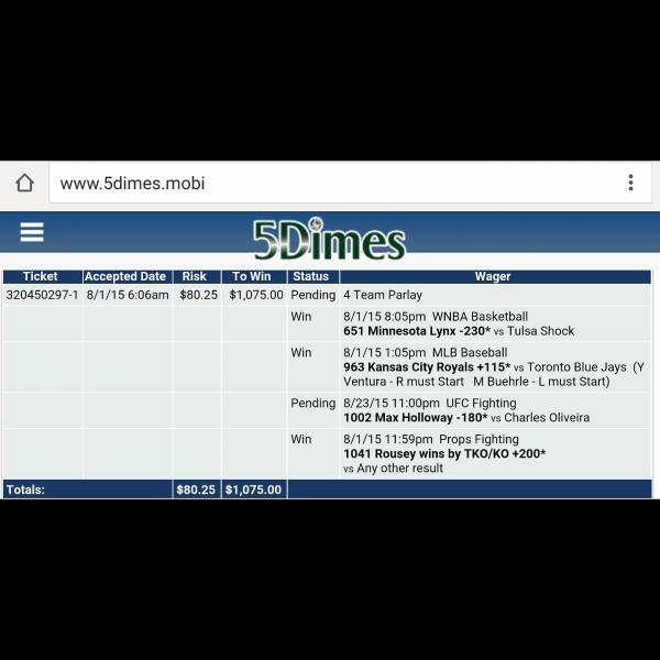 Bet at your own risk.... I really got a great feeling if Royals take care of business and get the ~W~ we got ourselves a winner. Let's see. Good Luck to everybody today.