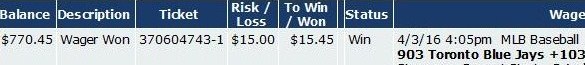 This is only my second season capping baseball, my first being 3 years ago. Pont is, I'm still kind of new to this and don't recommend anyone tail me. However, I believe that the more info posted on this site the better off we'll all be even if its just to find people to fade or simply to bolster confidence in your own picks.