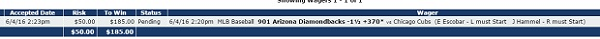 #54Nothing too bad. Only 3 plays today after all. Sometimes you got to take a shot at the long shots like the Diamondbacks when there is value.