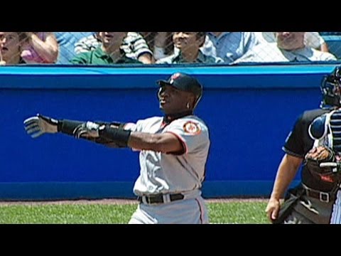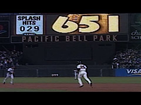 now compare that ball to this homerun - which I would guess is also 430 - 450 feet (way into the cove). Look at how much lower the launch angle of this ball is vs the yankee stadium homerun