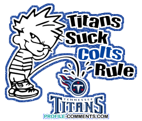 #112888Maybe you should look at the Titans pass defense stats before talking about anything else. Payton is gonna bounce back today with a BANG against that garbage ass Titans pass D. Finnigan gonna be slobin on Wayne's knob the whole game. Also not to mention they are just about last in total offense and that stock won't rise after tonight's ass whooopin homeboy !!!!Originally posted by maxcraftChris Johnson will have a monster game.. Just look at how the Colts are ranked in the run defense.. Fukking 29th