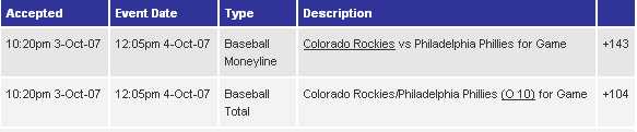 The Rockies have now won 15 out of 16 and 22 out of 29, yet I was able to get +142? I mean I know the Phillies are desperate and all, but desperation won't help you if you can't hit left-handed pitching. The Phillies are now batting .178 vs. southpaws the last 10 games after Francis made the heart of their lineup look silly yesterday, and they are facing a very hot lefty today in Morales.