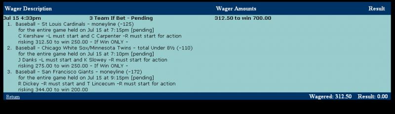 Please explain to me the IF bets again.. All 3 have to work or you lose 312.50? Correct? If you parlay all 3 picks and risk 300 it pays back over 1300?