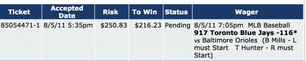 my card is $150 to win $178 over 4 bets: brew crew, yanks, jays, and a parlay with the phils + total....lets make some money