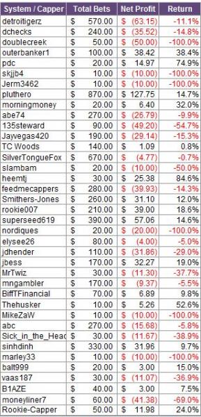 YTD: 28-18; +16.35 (1030.5/163.2; 15.8% return)Comment -