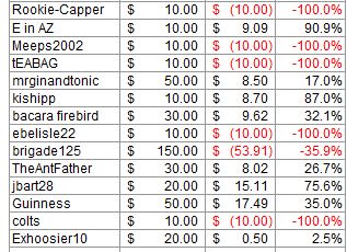 Good start for the day yesterday at 3-0, then I got greedy and lost most of it on Toronto. Love those bullpens.
