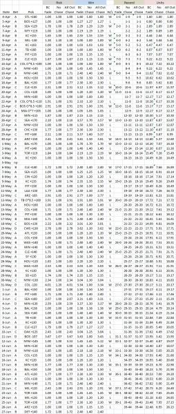Note: the chase will be to win previous bet and 1 additional unit (if -odds) or risk 1 additional unit (if +odds).