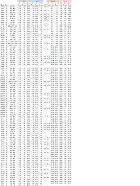 (Bet 1 to win 1.30) *This is a simple overall record, betting to win 1 if negative odds, to risk 1 if positive odds.