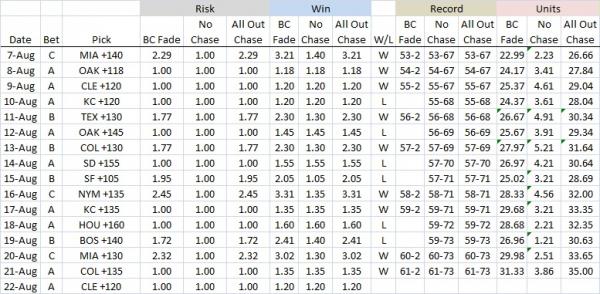 BC Fade overall record: 64-75, +5.61 units