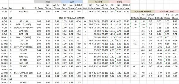 BC Fade overall record: 73-96, -3.54 units