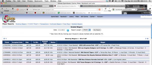 #40good for you, why didnt you post these winners before the game started?Originally posted by riffraff24You're right. I took Dodgers to score first -130 and -.5 first 5 innings. Also have a unit on the game -1 at -153.