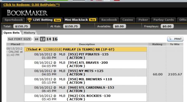 today i took all four teams that where going to get swept in there series and all for hit for me its crazy....Rangers, Pirates, BSoxs, and Dbacks....man what a lucky day..they all didnt get swept....