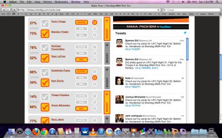 #56Just watching the Thiago-Bahadurzada fight, Mike Goldberg's such an idiot (gunshard). Thiago's going face first with momentum, Goldberg's marveling at how Bahadurzada knocked him out moving backwards. He actually wasn't even moving backwards so wrong there too.Comment -