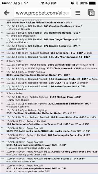 #203Pending 2 Team Parlay Pending 10/24/14 7:00pm Bellator Fighting 3702 David Rickels -170* <small style="padding: 0px; margin: 0px;">vs</small> Davi Ramos Pending 10/24/14 9:30pm Props Fighting 3209 Coenen wins inside distance -138* <small style="padding: 0px; margin: 0px;">vs</small> Not Coenen inside distance