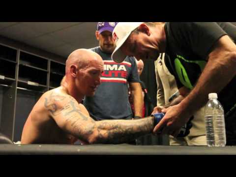 “Right before I fought Brian Stann I actually went out. My brother worked in Las Vegas in a place that sold those frozen drinks, you know? Anyways, I got blackout drunk the day before weigh ins. I went back into the Hard Rock and for some reason something upset me, so I was in the bathroom stall the back bathroom stall and I kicked my way all the way to the exit by kicking the stall walls down. They were like marble stall walls, so I just decided to kick all the stall walls down to the exit, and big surprise I got arrested. So the security guard for Hard Rock is handcuffing me and everything else and the guys I was with where like from Ireland, and apparently they thought I was Irish too because I was just mocking their accent, penetrating with them, but I think they literally thought I was Irish, and so I ended up bribing my way out. So before his reinforcements came I gave him $500 bucks, he let me run up to my room. Ended up waking up. My phone is ringing off like crazy and wake up in a pile of puke and I’m late for my photo shoot for the UFC. It was a nightmare ’cause I thought I was only eight in the morning, but somehow I set the alarm wrong on the wall, and that’s the time I wanted to wake up. I thought it was eight in the morning, but it was actually noon. And that was maybe two, maybe three days before I had to step in and have a war with Brian Stann.”