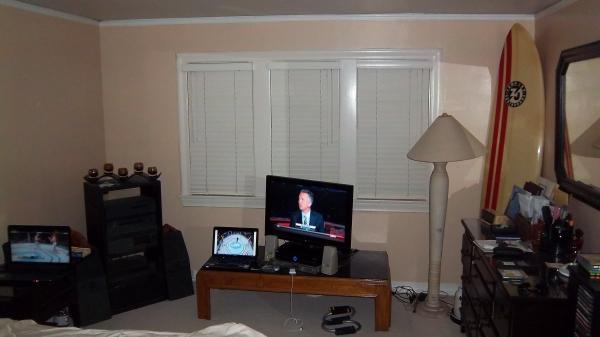 Partial inside pics of me casa.. Residential square footage in Santa Monica, California is arguably the most expensive in all of America.. Not a mansion Marzwood but a nice house I built and designed myself years ago.. Older pics but this is a current pic of part of my master room and part of the living area (yes was streaming the UFC on my laps and viewing on my TV at the time of that pic) LOL... Not flattering pics, looks much better and bigger in person.. That's how I roll living as a single dude near the beach out here on the West Coast..