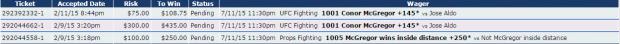 Post your Aldo vs McGregor bets here, BEFORE THE FIGHT.