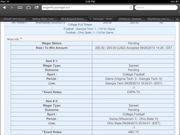 #77push 2nd half, teaser loseOriginally posted by Bet10HeinekensG.T. -4 2nd half -110 to 2 unitsComment -