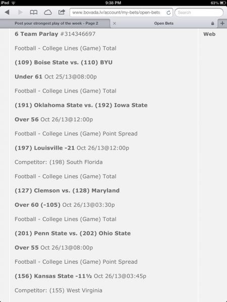 #62wow....y'all need to play these games that Brent from DSI hands out.Originally posted by mcgeezer1883After watching the DSI video and tailing the sharp play on totals.....im going for it again
