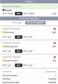 On paper it looks like a solid bet, but it wouldn't be shocking if either SC or Miss lose, There will be plenty of ten point favorites that will lose SU this year, and the fact that it's opening week means there's even more unknown about these teams. Let's say Boise beats Ole Miss, a few weeks from now Boise might be looked at different than they are now, same with Ole Miss. We might look back and say how in the world was Miss a DD fave over Boise, these teams are very close. I think this parlay would be better after these teams have played a few games so everyone has a read on them. Nothing would surprise me in week one. GL with your bet, I hope it cashes for you.