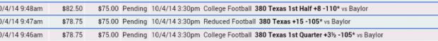 Well here are my plays for todays texas game. I feel really good about these plays! Cash em!