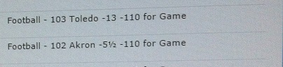 #90Akron -5.5 LOriginally posted by PECollege Football wk#11