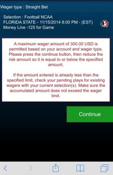 So I tried making a 10 unit bet on FSU money line at -125. But my local maxed out at 300.00..! Either he's scared of taking a hit or something else up?