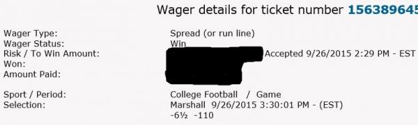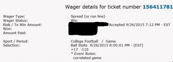 Alright, it looks like attaching those pictures worked. Baby sitting the nephew this past weekend and after review of all my plays I forgot to post Ball St and Marshall. Week 4 was a rough week, I'll have a follow up post on some of our misfortune this past weekend. I'm sorry it's taken me a few days to update the results. Below are results:
