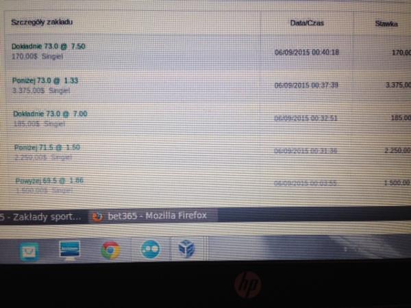 and 250 @ 8.00 exact 24 (1ST HALF)