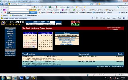 #19ok dozer ill prove it to u, i said i made 55K off UCF ML vs georgia. now here u have the real deal kid.Originally posted by dozeri could care less what you bet, and hope you arent lying, but those screen shots can be of a bet you placed, then a few minutes later cancelled. give me a screenshot after the game has started, with the final score or even during the game and i will believe, or even better the results page.