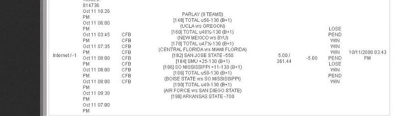 This wasn't for any big money, but damn, the Golden Eagles screwed me. Bad thing is i didn't play any of those games, they were games that didn't make the cut, so i parlayed them all. my other bets between $25-70 turned out alright, but damn, i can't believe i didn't put money on any of those sides or totals. Hitting that would of helped offset my 4 NASCAR bets that didn't cash.