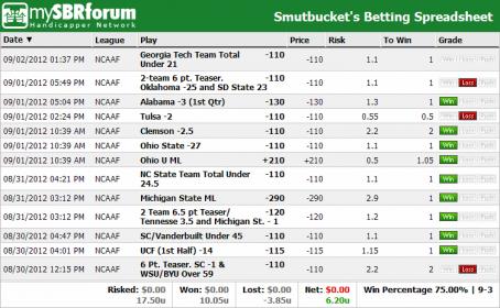 Thanks 2dabank too for the Under in 1st half pick....put it on my spreadsheet which reflects all my bets (now 11-3 +8.2 units!)
