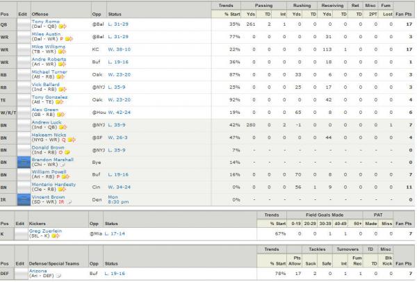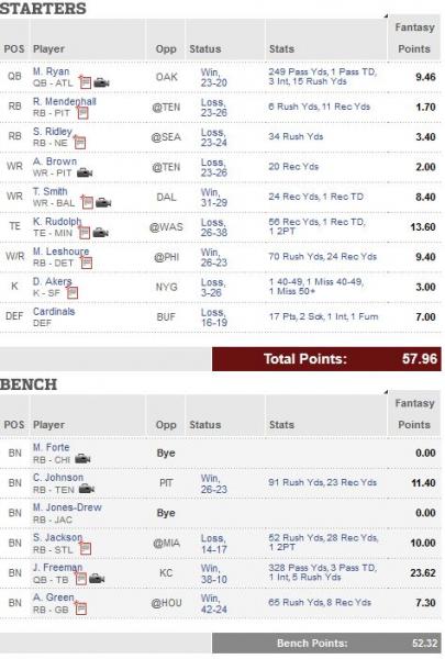 Gotta love having your TE as top starter and the bench only having 5 less points even with MJD and Forte on bye.