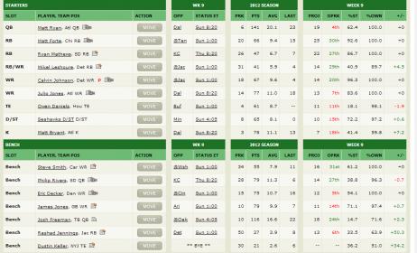 | SLOT | PLAYER, TEAM POS | ACTION | OPP | STATUS ET | PRK | PTS | AVG | LAST | PROJ | OPRK | %ST | %OWN | +/- | |||