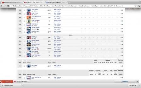 #6QB Tony RomoQB - DAL @NYJ Loss,24-27 4184 31 10 46 1 - - - - 3 275.96 RB Arian FosterRB - HOU IND Win,34-7 - - - 1224 10 617 2 - - 3 250.10 RB Trent RichardsonRB - CLE CIN Loss,17-27 - - - - - - - - - - 0.00 WR Greg JenningsWR - GBView News NO Win,42-34 - - - - - 949 9 - - - 148.90 WR Victor CruzWR - NYG @WAS Loss,14-28 - - - 3 - 1536 9 - - 1 205.90 TE Jacob TammeTE - DENView Videos OAK Loss,20-23 - - - - - 177 1 - - - 23.70 W/R Brandon LloydWR - NE @MIA Win,38-24 - - - - - 966 5 - - - 126.60 BN Matt RyanQB - ATL @CHI Loss,12-30 4177 29 12 84 2 - - - - 3 273.48 BN Donald BrownRB - IND @HOU Loss,7-34 - - - 645 5 86 - - - - 103.10 BN Pierre ThomasRB - NO @GB Loss,34-42 - - - 562 5 425 1 - - 1 132.70 BN Miles AustinWR - DALView News @NYJ Loss,24-27 - - - 3 - 579 7 - - - 100.20 BN Eric DeckerWR - DENView Videos OAK Loss,20-23 - - - 1 - 612 8 - - 1 107.30 BN Nate WashingtonWR - TEN @JAC Loss,14-16 - - - 5 1 1023 7 - - - 150.80