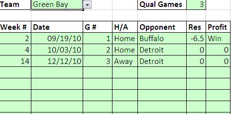 it would see that it was game #2 and check game #1 for GREEN BAY. So it would see that in row 4 green bay was the BET Team and Lost.