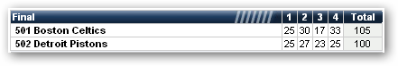 predict the full game (including OT) box score (including which team is leading) & receive 100 points. 4th Q 23-30 Pistons/FG 101-95 Celtics
