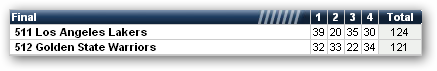 1. Lakers 30 Golden State 25