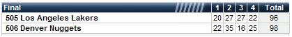 predict the full game (including OT) box score (including which team is leading) & receive 100 points. 23-26 Nuggets 4th /96-99 FG Nuggets